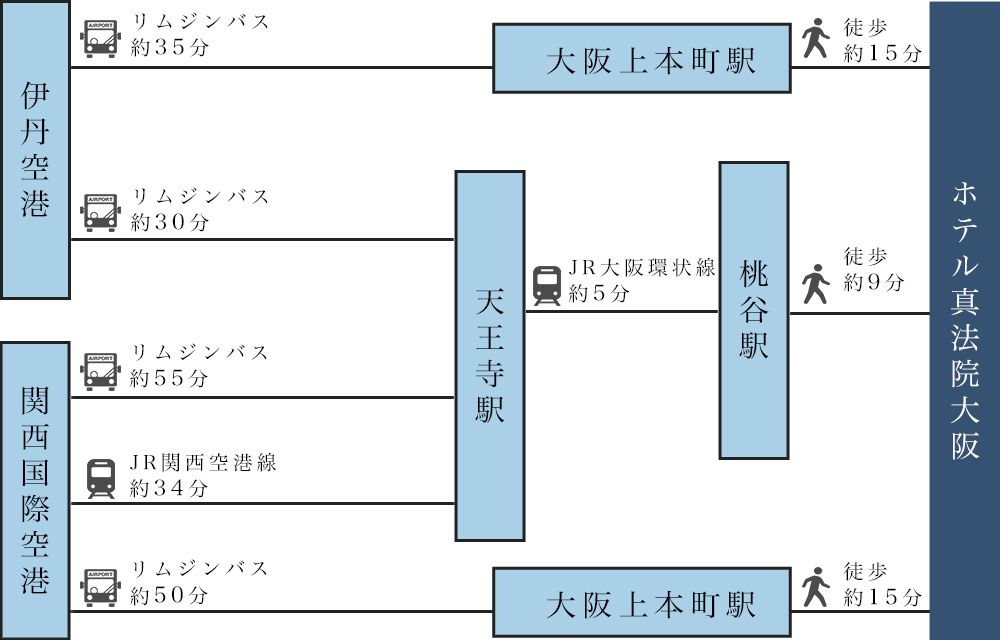 四天王寺や大阪城などの名所・旧跡をはじめ、あべのハルカスや、なんば・心斎橋、梅田などの繁華街、どちらへもアクセスしやすい立地です。